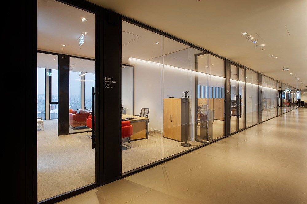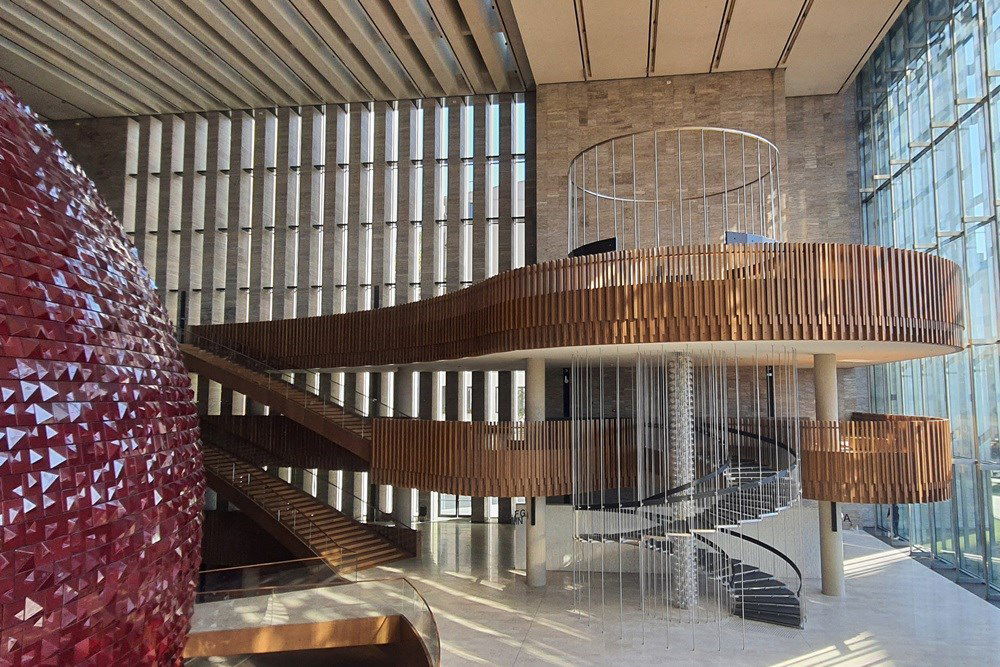 Projede kullanılan cam bölmeler ve ayarlanabilir kapı sistemleri, mekânların farklı ihtiyaçlara göre kolayca düzenlenmesine imkân tanımıştır. Şeffaf yüzeyler, doğal ışığın iç mekâna yayılmasını sağlayarak alanları daha ferah ve açık bir hâle getirmiştir. Yüksek akustik performans talep edilen alanlarda tercih edilen SEPERA bölme sistemleri ile hem mekânsal esneklik korunmuş hem de istenen ses yalıtım değerlerine ulaşılmıştır. Opera salonunda ise 7.500 m² alanda kullanılan DENDRO lamine parke çözümleri, hem akustik konforu hem de sahne ve izleyici alanındaki estetik bütünlüğü desteklemiştir. Ayarlanabilir kapı kasaları, mevcut duvarlardaki ufak farklılıkları gidererek temiz ve düzgün bir bitiş oluşturmuştur. Tüm bu sistemlerin bir arada kullanımı, iç mekânda düzenli, okunabilir ve konforlu bir kullanım ortamı sağlamıştır.