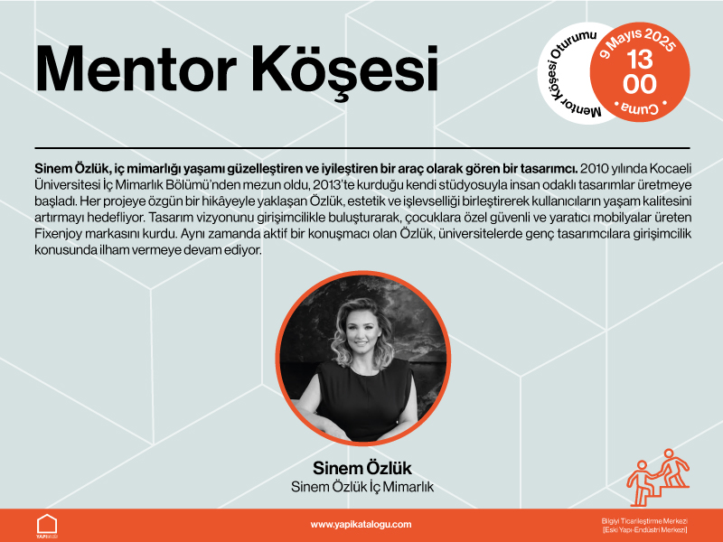 Sinem Özlük, iç mimarlığı yaşamı güzelleştiren ve iyileştiren bir araç olarak gören bir tasarımcı. 2010 yılında Kocaeli Üniversitesi İç Mimarlık Bölümü’nden mezun oldu, 2013’te kurduğu kendi stüdyosuyla insan odaklı tasarımlar üretmeye başladı. Her projeye özgün bir hikâyeyle yaklaşan Özlük, estetik ve işlevselliği birleştirerek kullanıcıların yaşam kalitesini artırmayı hedefliyor. Tasarım vizyonunu girişimcilikle buluşturarak, çocuklara özel güvenli ve yaratıcı mobilyalar üreten Fixenjoy markasını kurdu. Aynı zamanda aktif bir konuşmacı olan Özlük, üniversitelerde genç tasarımcılara girişimcilik konusunda ilham vermeye devam ediyor.