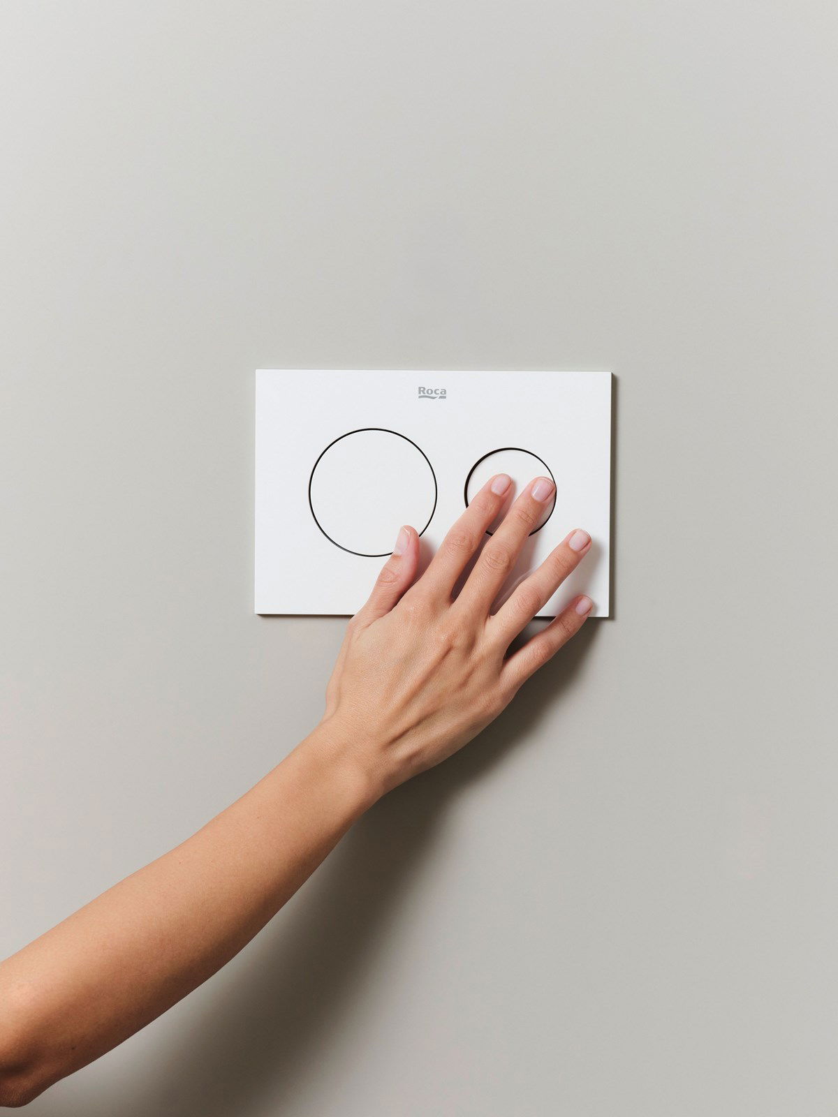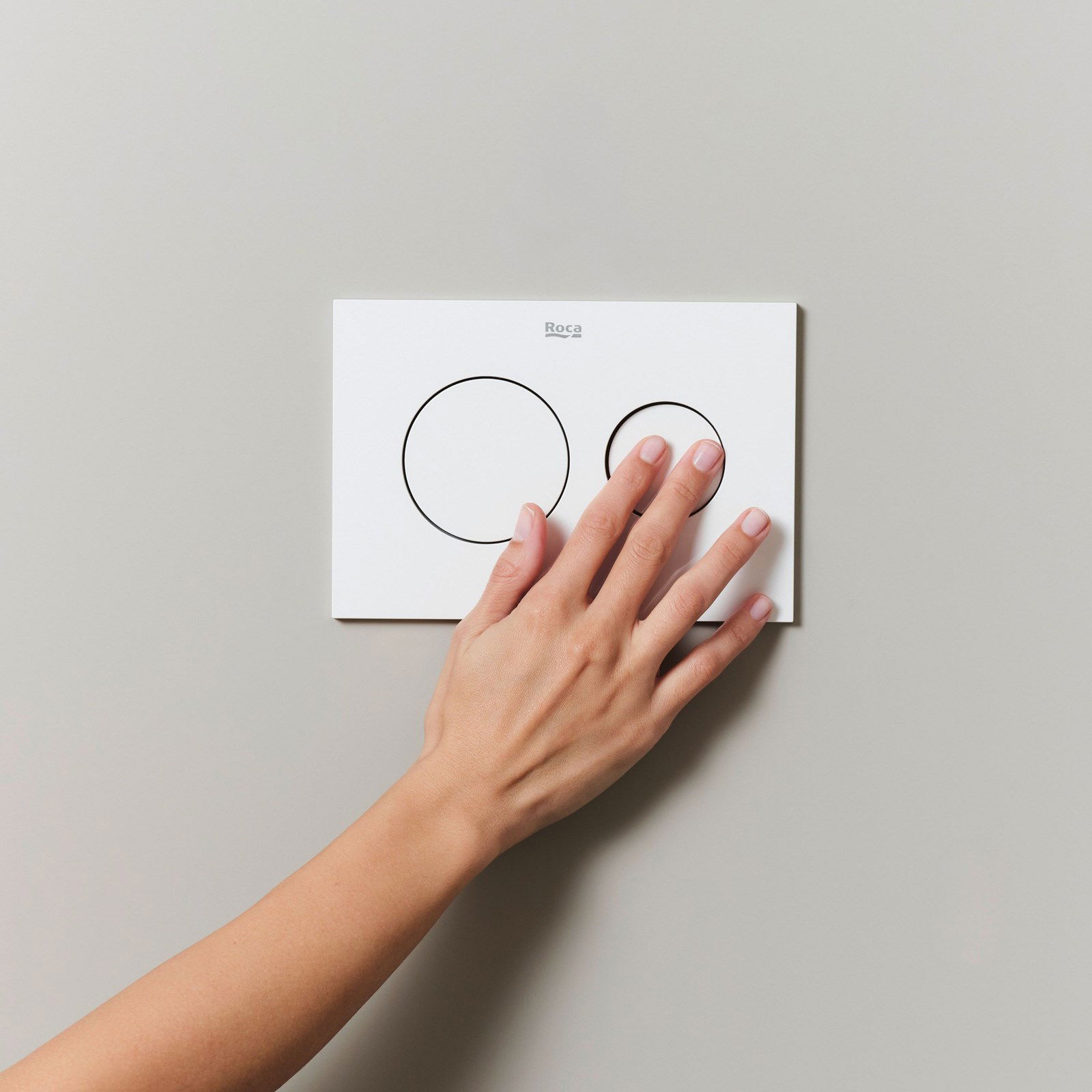 Roca basma butonları manuel şekilde veya hareket sensörü aracılığıyla etkinleştiriliyor, ikili yıkama seçeneği sayesinde su tasarrufu sağlıyor.
