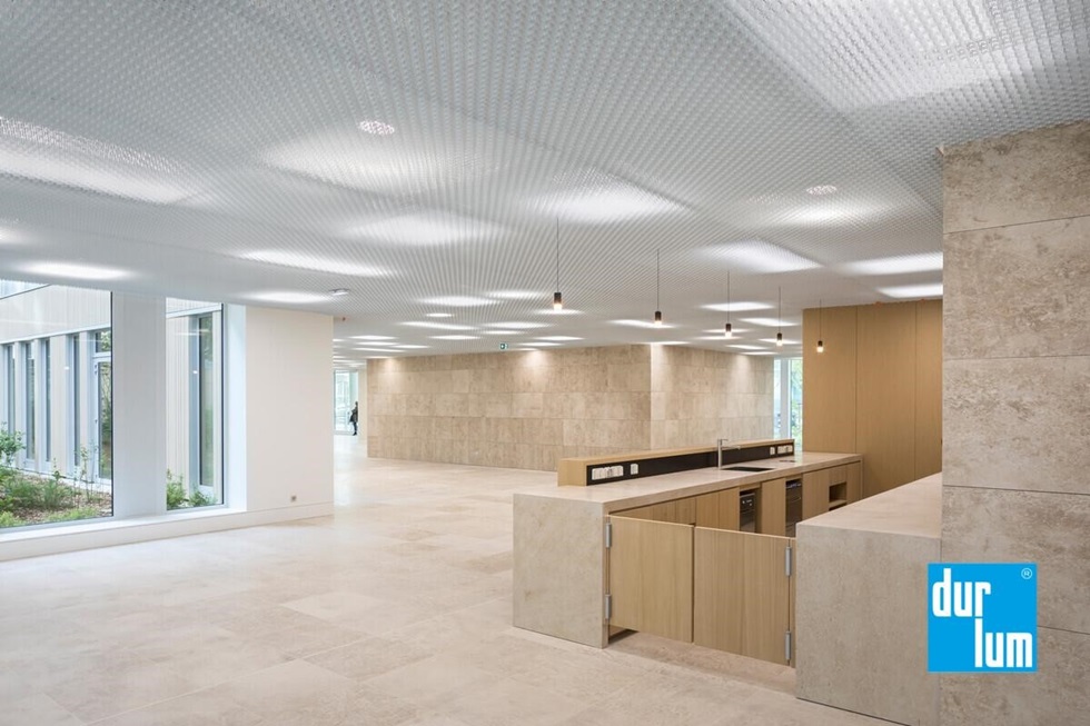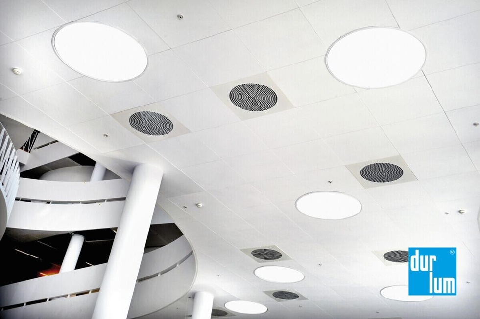 Durlum'un dur-SOLO® ada tavanları ile modern mimaride işlevselliği ve yaratıcılığı bir arada görülmekte. Projenizin gereksinimlerine bağlı olarak, farklı modül büyüklükleri ile çok sayıdaki işlevsel ve optik uygulama dur-SOLO® ile mümkündür. dur-SOLO® ışığı yeniden yönlendirmek için bir yansıma yüzeyi olarak da kullanılabilir. Ayrıca dur-SOLO® optimum akustik özelliklere sahip olmakla ses emilimi sayesinde gürültü seviyesini azaltır. dur-SOLO® soğutma kapasitesine bağlı olarak isteğe göre soğutulmuş bir tavan olarak da tasarlanabilir.