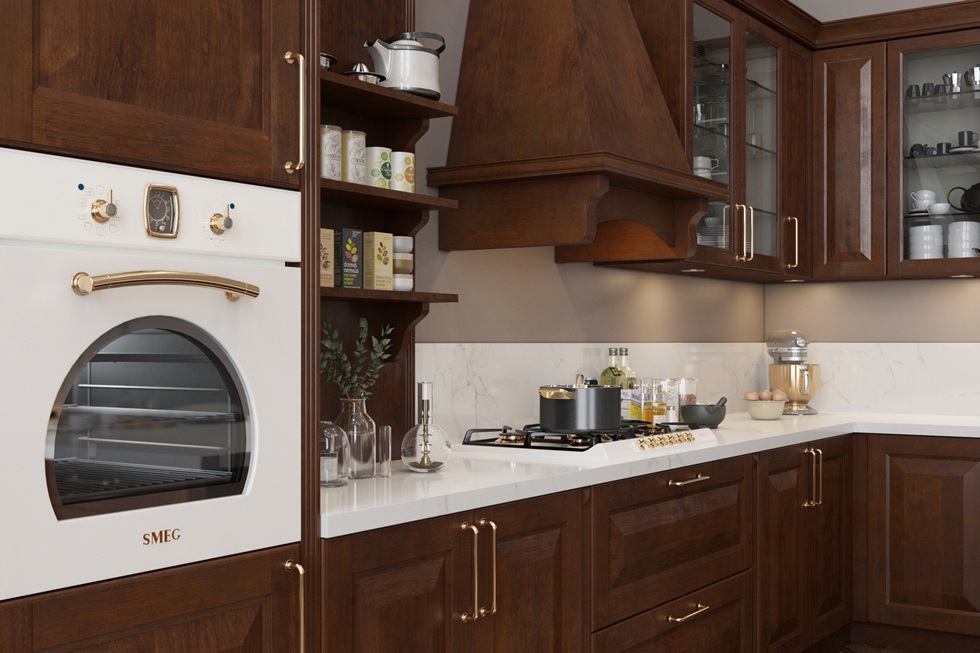 Aydınlatma armatürlerinin seçimi, genel tasarım diline uygun olmalıdır. Minimalist bir mutfakta, sade tasarıma sahip, gömme LED spotlar kullanılarak detaylardan kaçınılabilir ve net bir görünüm elde edilebilir. Klasik bir mutfakta ise tasarım çizgisine uygun, rustik görünümlü armatürler tercih edilebilir.
