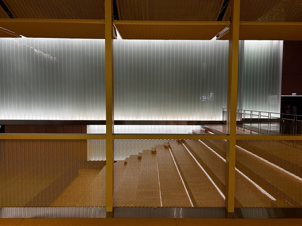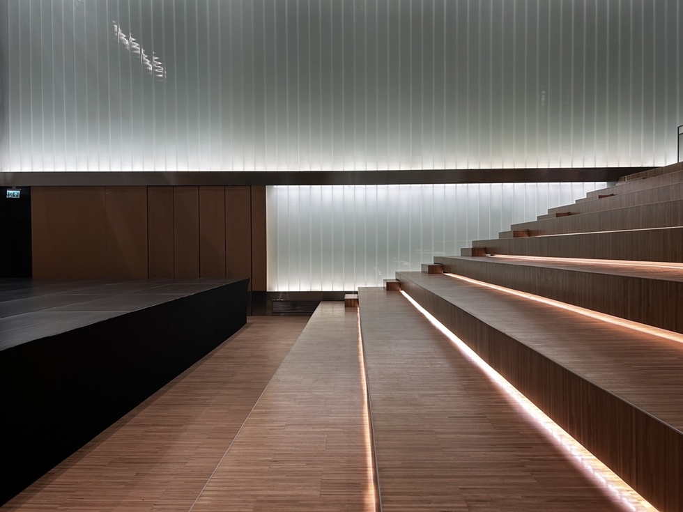 Buradaki mekansal boşluklar dizisi, çok amaçlı etkinliklerde kullanılırken istenen konfor ve etkinliklerin kalitesi için akustik performansın ne kadar belirleyici olduğundan bahsetmiştik. İnsanlar arka planda rahatsız oldukları ama o anda fark etmedikleri, denetimsiz ses nedeniyle mekânda fazla durmuyorlar, ancak şu anki akustik konfor; girişten başlayarak seni o mekanda tutacak sakinlik ve dinginliğe sahip. Peyzaj ve açık alan tasarımlarında çok kullanılan bir tabir vardır; “görünmeyen yapılar”. Bunu kapalı mekana transpoze edersek: ses, ışık ve sıcaklık gibi konular... Arka planda, gözle görünmeyen bu yapılar mekan kalitesini çok farklı seviyelere taşıyabilir. Harika bir mekandasın ama kötü kokuyor veya çok uğultulu. Belirli bir süreden sonra bu gibi faktörler dayanılmaz hale gelir. Gözle görülebilen, estetik bağlamın ötesinde, bütün duyularla mekân deneyimine katkıda bulunan unsurların hepsi tasarımımızın bir parçası. Tasarımı yaparken de bunun farkında olarak yapıyor olmak çok önemli. Biz, neredeyse projenin başında, bunun kaçınılmaz bir gereklilik olduğu bilgisi ile tasarımı sürecini bu doğrultuda yönlendirdik ve en başından beri danışmanlıklarla beraber süreç geliştirildi.
