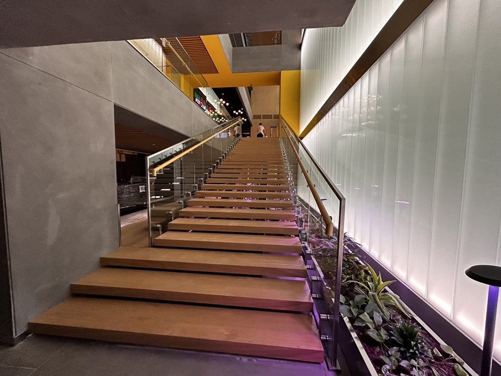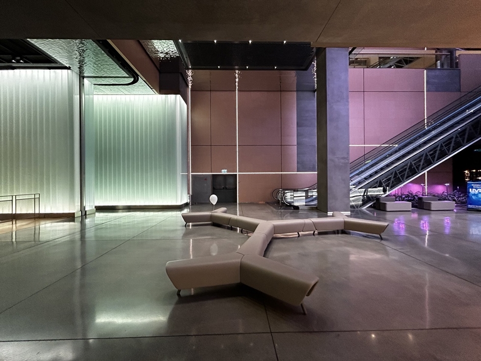 Bir alışveriş merkezinin içindeki insanların deneyimi genelde fragmanlar halinde oluyor. Akışkan bir sürekliliğin içinde farklı farklı yerlere girip çıkılan bir hareket var. Fakat bu performans merkezi öyle bir alan değil, insanların bir yolculuk olarak deneyimlemesini istediğimiz, mekanların bütünsel olarak algılanmasını istediğimiz bir alan. Mevcut mekân; yemek katından ortak bir hole inilen ve çıkılan, etrafında da sinema salonlarının olduğu bir yerdi. Dolayısıyla o hol de, etrafı kapalı bir boşluk olduğu için çok deneyimlenebilecek bir alan yaratmıyordu. Bu noktada tasarım sorularımız ortaya çıktı. Birincisi; farklı hacimsel boyutlar içinde boşluk(lar) dizisinin sürdürebiliyor olmak ve insanlara o deneyim sürekliliğini yaratarak farklı programlarla karşılaştırabiliyor olmak. İkincisi ise; bunun bir yolculuk haline gelmesi. Yolculuk halindeyken de insanların hem ölçek anlamında hem algı anlamında hem de program anlamında farklı deneyimler yaşayabilmesine izin veren, hem ayrışan hem de bütünselliğini kaybetmeyecek bir mekan arayışı oldu. Üst kottan (food-court) tanımlanmış, yürüyen merdivenlerle büyük bir boşluk dizisine inilen, aşağıda sinemaya ve etkinlik alanlarına dahil olunabilen bir kurgu ortaya çıktı. Farklı ölçekte boşluk olarak tanımlanan büyük hacimler ile fuayeler zinciri kurmak gibi tarif edebiliriz bunu. Akışkan sürekliliğe sahip bir mekân hedefledik. Mekanlar boşluk etkisini kaybetmeden yüzey ve çeper ara kesitleri ile farklı programlar yaratıyor.