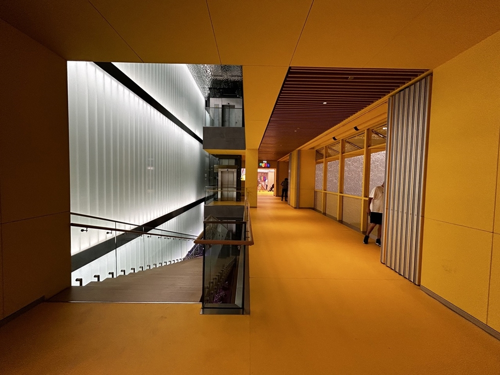 Boşluk ve yolculuk meselesinde, ziyaretçilerin boşluklar arasında gezinirken kaybolmama hissiyatı ve farklı programlarla karşılaşmasının yanı sıra, dönemsel veya farklı zaman dilimlerinde mekanın farklı reaksiyonlarına şahit olması. Gündüz saatlerinde veya bir çocuk eşliğinde gidildiğinde başka bir mekan, bir tiyatroya veya bir gece etkinliğine gidildiğinde başka bir atmosfer. Her ziyaretinizde farklı bir şey görebileceğiniz, boşluk olarak iyi bir hissiyatta olduğunuz ama program olarak çok farklı yüzlere sahip canlı bir yapı. Tamamen açıldığı anda boşluklar zinciri ile çocuk alanına geçen kısım bir köprü haline dönüşüyor ancak kapalı olduğunda kendi başına kapalı bir kutu haline gelen bu köprü etkinlik meydanından algılanmıyor. Etkinlik ve program bazında kendini dönüştürebilen bir tarafı var, bu da kullanıcı deneyiminde her ziyaretinde başka bir yolculuk vadediyor. Bunu sağlayabilmenin yolu mekânsal kurgu kadar seçilen malzemelerin bir aradalığının da bu tasarım dilini desteklemesi. Projede olabildiğince az malzeme kullandık. Malzemeler burada dekoratif bir öge değil. Her birinin mekan, atmosfer, program, algı, akustik gibi teknik ve işlevsel görevleri var.