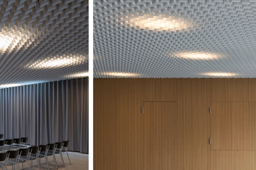 Sürdürülebilirlik vizyonuyla şekillenen EWS Schoenau Merkez Binası, yalnızca enerjiyi dönüştürmekle kalmıyor; mimari diliyle de geleceğe yön veriyor. Bu dönüşümün merkezinde ise yine LIVA var. Etkinlik alanı ve kafeteryada kullanılan çok yönlü açık hücreli LIVA sistemi, ışığı homojen şekilde dağıtarak mekâna gözle görülür bir ferahlık kazandırıyor.