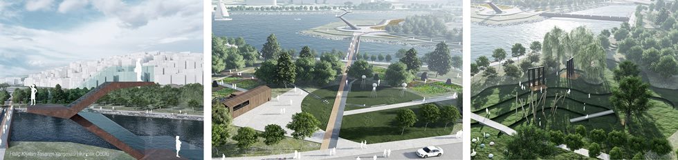 İstanbul Senin Haliç Kıyıları Tasarım Yarışmasında ödül aldığımız projemizde; makro ölçekten başlayarak, çalışma alanımız olan Silahtarağa, Sütlüce, Halıcıoğlu sahil bandındaki yerel ölçekte çözümlere kadar her alanda kültürel bir eklemlenme, kondisyonu iyi olanı geliştirme, yeni ekler yaparken de bugün için değil, gelecek için tasarımlar yapmaya özen gösterdik. Zaman zaman, her anlamda kopuşların yaşandığı bir kent parçasında, doğanın sürekliliğinin sağlanması adına iklim değişikliğinin yaratabileceği potansiyel tehditler ön görülerek bazı önlemler almaya çalıştık. Bunlardan en önemlisi deniz seviyesinin yükselmesi senaryosuna karşı, sahil bandında bir tampon bölge oluşturarak suyun burada deşarj olmasını sağlamaktı. Böyle bir senaryonun gerçekleşmediği zamanlarda ise, bu bandın kentliler ve diğer canlılar tarafından etkin bir şekilde kullanılmasını sağlamak adına rekreatif bazı öneriler getirmeye çalıştık. Kültürel süreklilik anlamında yüzyıllar önce aktif bir biçimde kullanılan sayfiye alanlarının devam ettirilmesi ve kentlinin bu bölgeyi daha uzun süreler kullanabilmesini sağlamak amacıyla, konut dokusu ile aradaki bariyerleri kaldırarak, erişimi kolaylaştıracak yaya bağlantıları geliştirmeye çalıştık. Önerilen düzenlemelerle aktif kullanımının artacağını ön gördüğümüz mekânların ekonomik sürdürülebilirliğini sağlamak ve kullanıcıların mekansal aidiyetini güçlendirmek için sivil girişimlerle bölgenin gönüllülük ve katılım süreçlerinin çalıştırılması gerektiğini vurgulayan kurguları işledik. Haliç gibi oldukça büyük bir kentsel çalışma alanında sürdürülebilirliğin ancak farklı aktörlerin, farklı kullanıcı gruplarının, yerel inisiyatiflerin senkronize olduğu, ortak bir eylem birlikteliğinde mümkün olabileceğini projelerimizde sıkça ortaya koyduk.