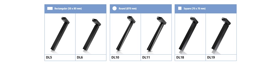 DL Feet: Ayarlanabilir masalardaki çeşitli ayakları içeren DL Feet, farklı profil tasarımlarındaki çeşitli kaldırma kolonlarına uygun olarak kullanılabilecek, iki standart uzunlukta ve farklı genişliklerde kullanıcıya sunulur. Ek olarak, montaj kolaylığı konusunda kullanıcılarına farklı imkanlar sunan LINAK, DL Feet tasarımlarında da iki farklı montaj çözümü sunar. Üstten montajlı ve gömme montaj olarak yer alan bu iki montaj çözümü sayesinde kolay montaj imkanı sunar.