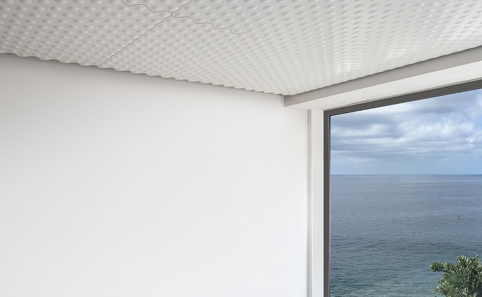 LOOP tasarım tavanında kullanılan PUNTEO-J 60 LED downlight'lar, hem görsel hem de işlevsel açıdan üstün performans sergiler. Tavan deseni, gizli bağlantıları sayesinde kesintisiz bir görünüm sunarken, mekâna zarif bir derinlik ve çağdaş bir estetik katar. LED downlight'ların güçlü ve dengeli aydınlatma etkisi, iç mekânın her köşesine eşit ışık dağılımı sağlayarak, ortamın genel aydınlık düzeyini yükseltir.