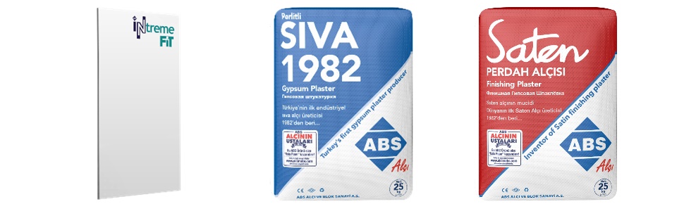 ABS Alçı’nın üretime geçmesiyle Türkiye inşaat sektörü endüstriyel sıva alçısıyla tanışmış ve dünyadaki ilk Saten Alçı üretimi de yenilikçi firma duruşunu ortaya koymuştur. Özellikle 1990’lı senelerde Rusya’da alçının adı “ABS” olarak isimlendirilmiştir. Eski Doğu bloğundaki komşu ülkelerin çoğu endüstriyel alçı sıvayla ABS Alçı aracılığıyla tanışmıştır. Ayrıca yapı alçılarında artık “temel ürünler” olarak adlandırılan Sıva, Saten, Derz Dolgu ve Yapıştırma Alçısı dışında M110 Yangın Tutucu Makine Sıvası Türkiye’de üretilen tek yangın dayanımı artırılmış makine sıvası olma özelliğini taşımaktadır. Kaplamasında geri dönüşümlü kağıt kullanılan Natura doğa dostu bir ürün olarak dikkat çekmektedir. Ayrıca Ekim 2020’de sektöre sunduğumuz yeni iç mekân alçı plakamız ile de yine bir ilki gerçekleştirerek Türkiye’nin ilk ve tek ultralight Alçı Plakasını Intreme FIT’i ürettik ve yenilikçiliğe olan bakış açımızı ortaya koyduk.