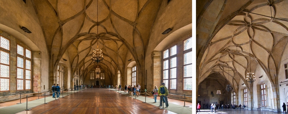 Prag Kalesi bünyesinde yer alan Vladislav Salonu, büyüleyici bir mimari eserdir. Kral Vladislav II tarafından yaptırılmış ve usta mimar Benedikt Rejt tarafından 1485-1502 yılları arasında inşa edilmiştir. Salon, 16 metreden fazla genişliğe ve 14 metreden fazla yüksekliğe sahip olan zarif bir tonoz ile örtülüdür. Dönemin Avrupa'sında en geniş tonoz olma özelliğine sahiptir. Geç Gotik dönemine ait olan yapının tavanının heykelsi formu, sade ve etkileyici bir atmosfer oluşturur. Tonozun kıvrımlı nervürleri, izleyiciye kendilerini, kocaman soyut bir çiçek bahçesinde gibi hissettirir.