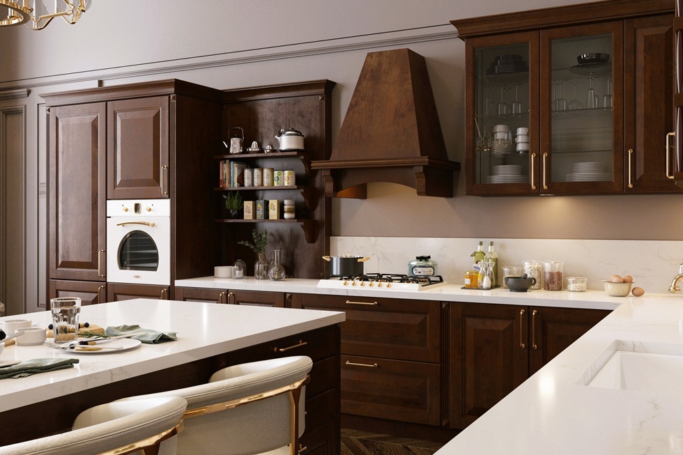 Fonksiyonel alanlar yaratılırken, ergonomik tasarımlar ve depolama çözümleri detaylı işçilikle çözülür. Mutfağın her bir bölümü, hem günlük kullanımda pratik olmalı hem de görsel açıdan uyumlu olmalıdır. Açık plan mutfaklarda, ileri teknolojiler ve akıllı cihazlar, işlevselliği artırırken, tasarımın genel estetiğiyle mükemmel bir uyum içinde olmalıdır.