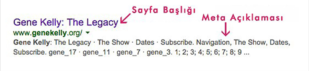Yukarıda yer alan örnekte de görebileceğiniz gibi, Google’ın sayfanızda yer alan herhangi bir metni seçmesine izin vermek pek iyi bir fikir değil çünkü arama yapan kişiye web sayfanızın ne hakkında olduğunu göstermek yerine, bir anlam ifade etmeyen bir sürü rastgele metin gösteriliyor. Meta açıklamalarınızı web sayfalarınızın reklam metni gibi görmelisiniz – bu şekilde arama yapan kullanıcılara neden daha fazla bilgi edinmek için sayfanıza tıklamaları gerektiğini söyleme şansınız vardır.