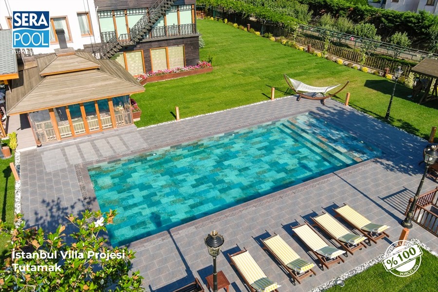 • Porselen tutamaklar, hem fonksiyonel hem de görsel açıdan temiz bir görünüm sunar. Havuz alanında hijyen sadece fiziki temizlikle değil, aynı zamanda görsel temizlikle de sağlanır. Porselen, lekeleri, izleri ve kirleri kolayca saklar ve yüzeyinde uzun süre temiz bir görünüm korur. Bu, havuz kullanıcıları açısından hem estetik hem de hijyenik bir ortam sunar.