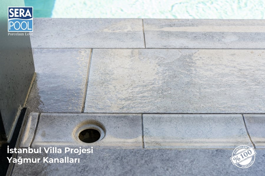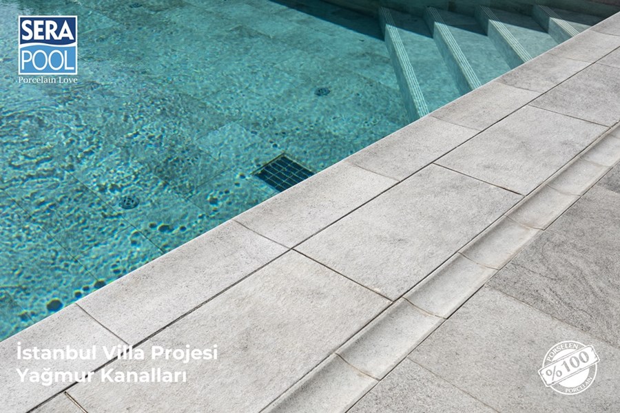 • Tasarımı estetik olan Serapool porselen yağmur kanalları, görsel açıdan havuz çevresiyle uyumlu olacak şekilde üretilir.