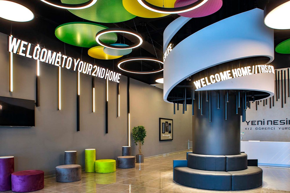 Dormitory, residence, office, hotel, restaurant, showroom, sports center, etc. interior projects and applications