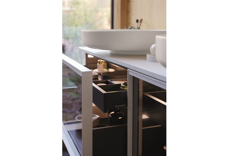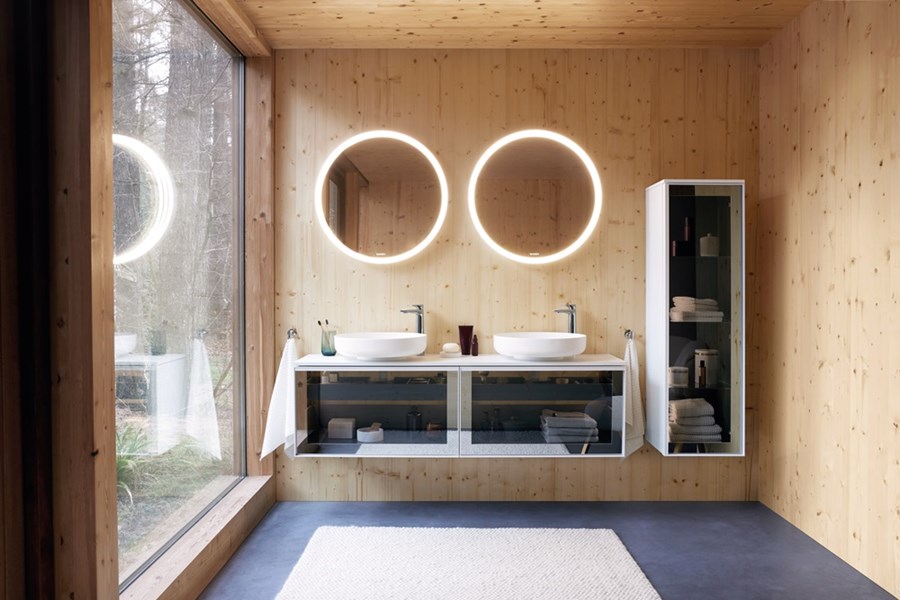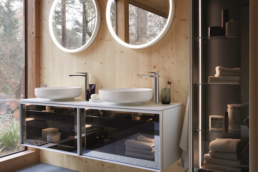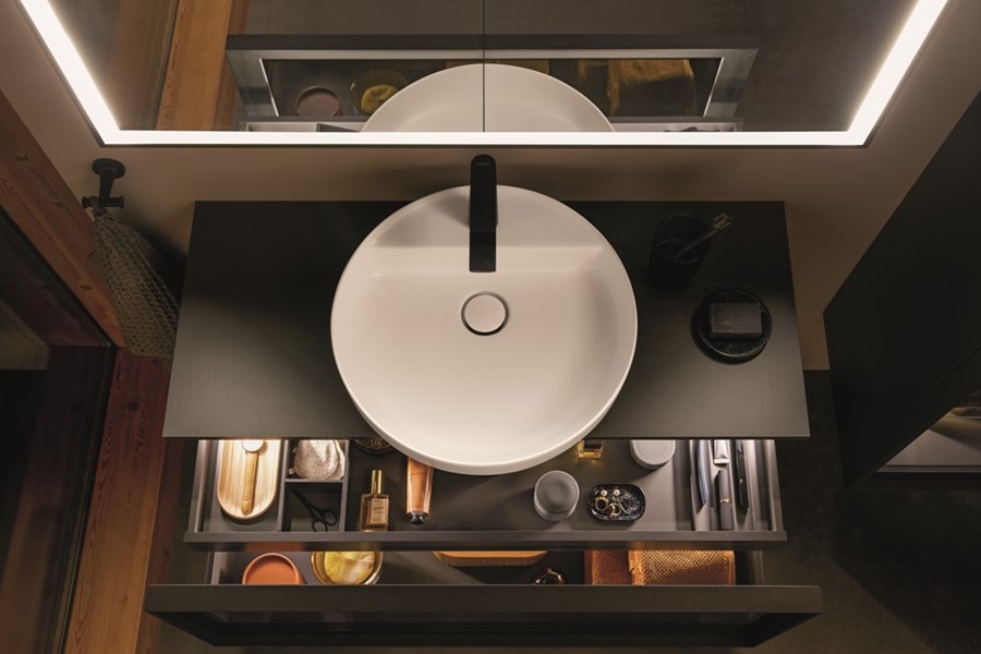 • Design highlights: console basin units with protruding countertop basins or vanity units with integrated c-bonded basins