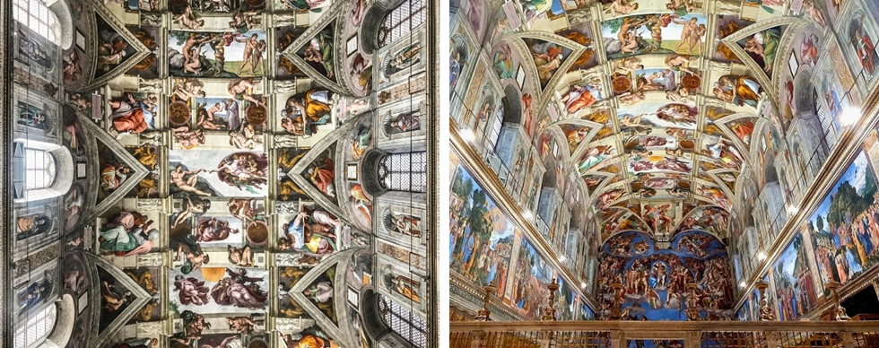 The Sistine Chapel, located in the Vatican, is home to one of the most stunning ceilings in architectural history. Although the Sistine Chapel has a simple exterior, its interior boasts immaculately detailed Renaissance paintings, making it an extraordinary display of art and history that appeals to both the heart and the intellect. The chapel features a rectangular layout and a vaulted ceiling approximately 20.7 meters high. A series of small vaults are located above the upper windows.