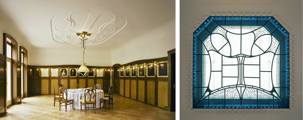 Villa Esche, located in Chemnitz, Germany, was designed in 1902 by Henry van de Velde for textile manufacturer Herbert Esche. As Van de Velde's inaugural project in Germany, the structure seamlessly marries functionality and aesthetics. It is a significant example of the Art Nouveau movement in architecture. After a renovation from 1998 to 2001, the building now hosts the Henry van de Velde Museum. The simplicity of the stained-glass ceiling in the entrance hall and the fluid lines of the elegant ceiling in the dining room reflect Henry van de Velde's refined style.