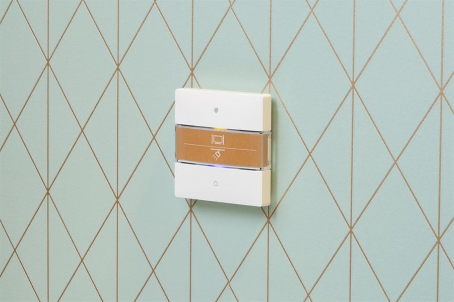 • Push-button sensor with 2 buttons and 2 status LEDs with integrated temperature sensor