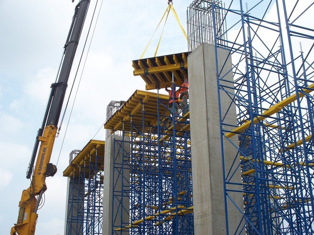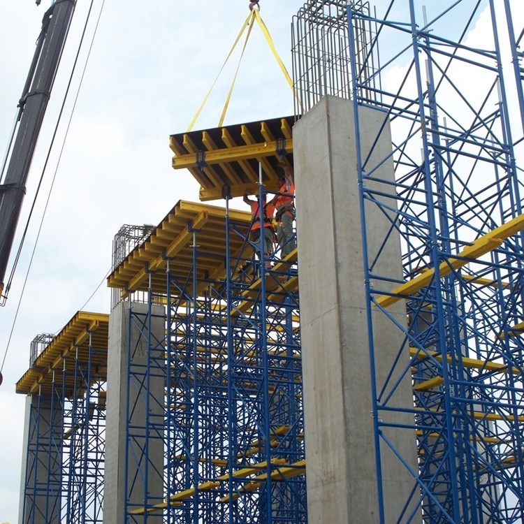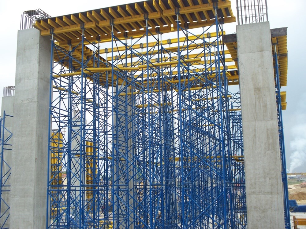 The main carrier is a high capacity bearing scaffolding system consisting of h frames. It consists of frame elements and diagonal connecting elements stably connecting frames. Frames can be added to each other to form the tower at the desired height.
