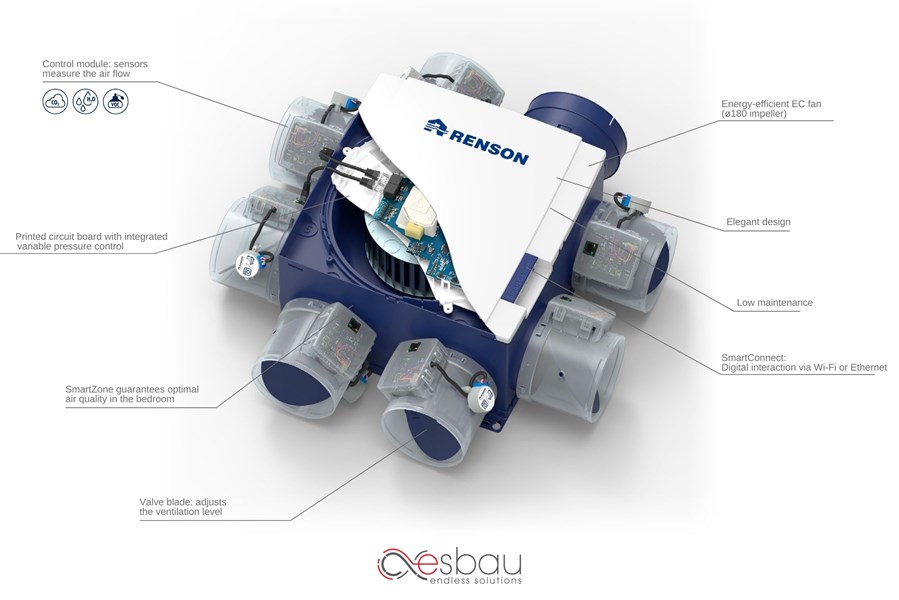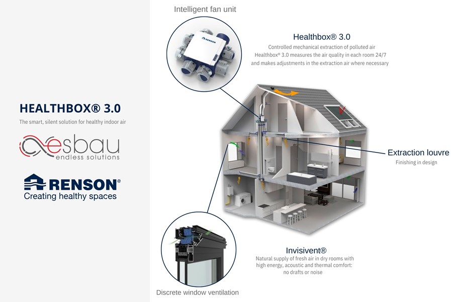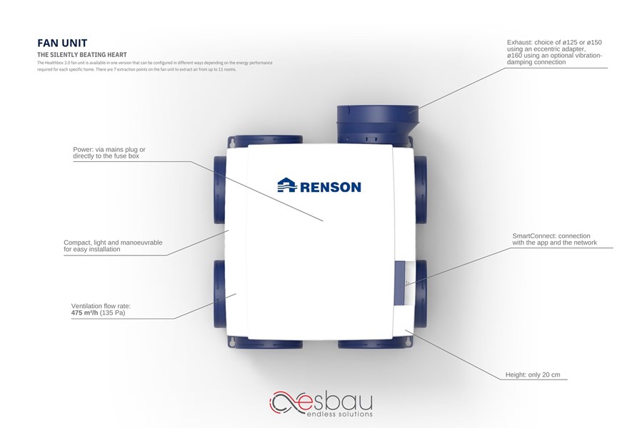 Installation is straightforward, facilitated by an installation app that guides users through automatic calibration, reducing setup time significantly. The system also features stylish design extraction valves, ensuring it complements any home décor. Overall, the Renson Healthbox 3.0 provides a smart, silent, and energy-efficient solution for maintaining optimal indoor air quality.