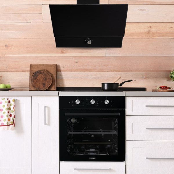 With its elegant black glass design, the Kumtel Design Set brings a modern touch to kitchens. Combining oven, hob, and hood in perfect harmony, it offers both aesthetics and functionality — standing out with ease of use and high performance.