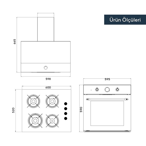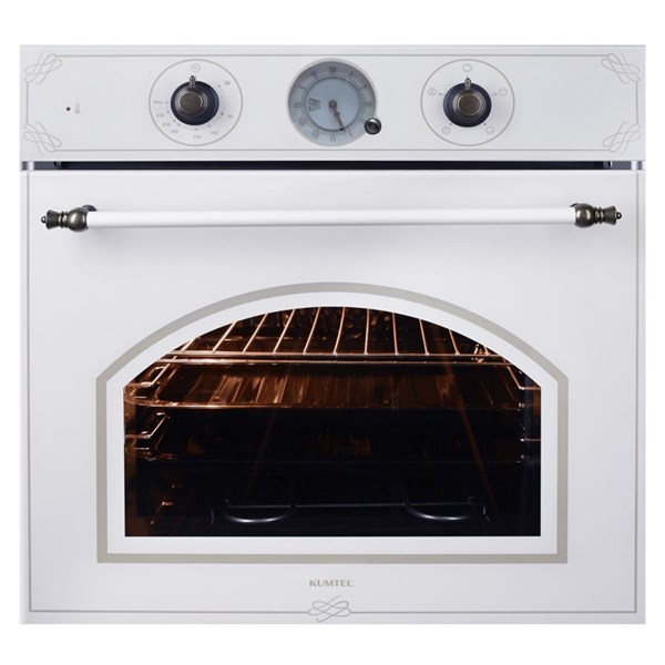 Kumtel Rustic White Glass Built-in Set brings rustic style to your kitchen with its elegant gold details. Featuring a powerful hood, 4-burner glass hob, and spacious oven, it combines elegance, functionality, and high cooking performance in one.