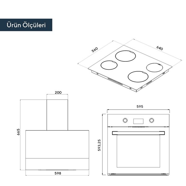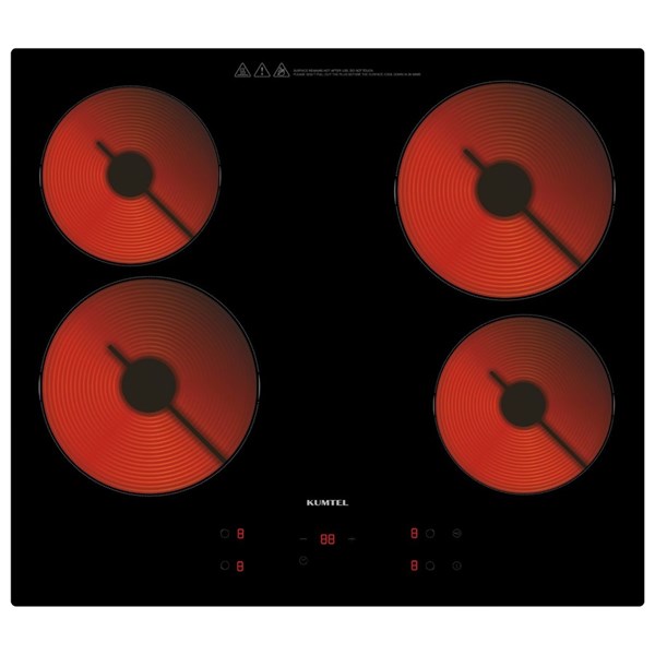 Kumtel Vitro Digital Black Glass Built-in Set adds elegance and functionality to your kitchen with its 4-zone vitroceramic hob, 8-function oven with digital controls, and touch-control black glass hood. Stands out with its modern design and easy-to-clean surfaces.