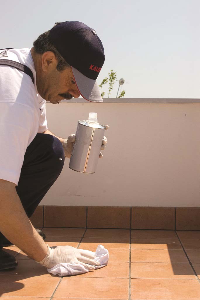 İzopur Trans System, which provides waterproofing on existing ceramics on balconies and terraces, should be started with 3455 İzopur Trans P, which is a ceramic surface primer. The existing ceramic surface to be applied must be clean, dry, sound and free of dust, dirt, oil and similar residues that prevent adhesion and the surface moisture should be below 5 percent. One-component, ready-to-use, easy and fast application 3455 İzopur Trans P increases the adhesion strength of the 3454 İzopur Trans waterproofing material to be applied on glossy and non-absorbent surfaces. 3455 İzopur Trans P should be applied over the whole surface with a clean and dry cloth.