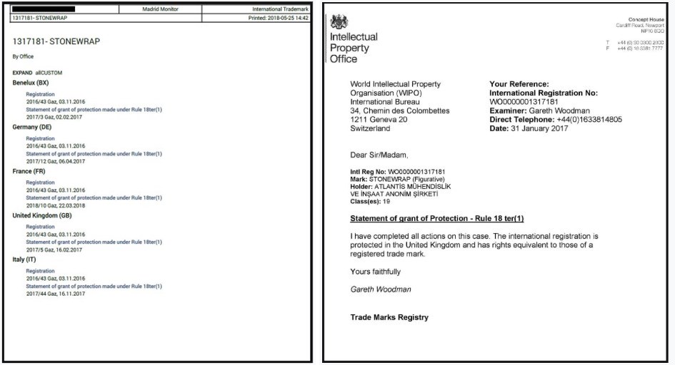 The need for registration in the most important countries of Europe, which was born with the brand becoming more and more involved in the European building materials markets, resulted in a long wait. The application for the registration of the Stonewrap brand in the Benelux countries, Germany, England, Italy and France has resulted in a positive result, making Stonewrap a registered trademark in Europe