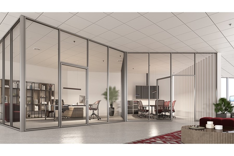 SMARTIA P100 Slim is a minimal aluminium-framed office partition with double glazing and excellent sound reduction. High aesthetics and a wide range of sturdy applications allow working conditions upgrade.