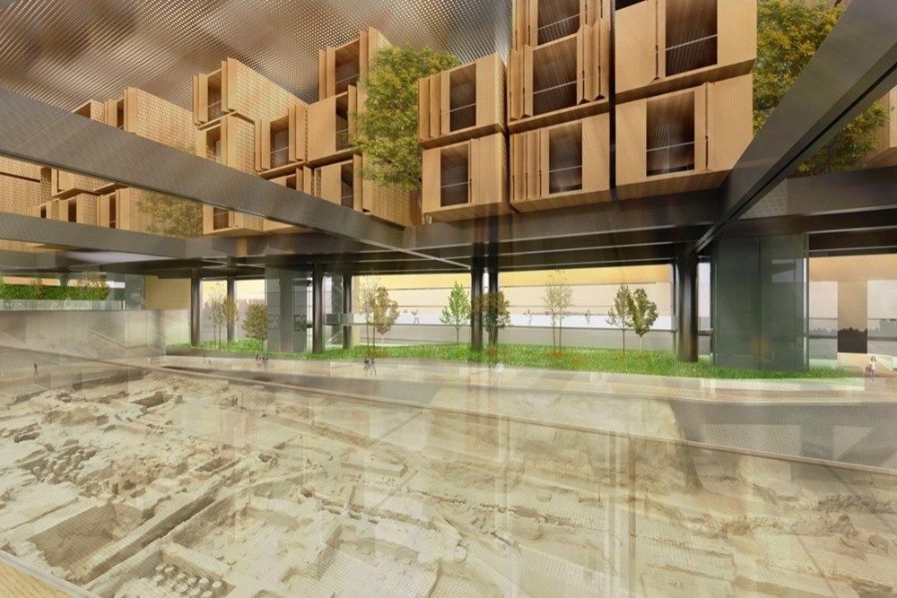 The Antakya Hilton Museum is located next to the ruins of St. Peter's Church, where the sacred places are located. Archaeological excavations at the beginning of the construction of five-star hotel, shed light on all kinds of ancient artifacts. The construction of the hotel has been changed as a result of important finds. The cube-shaped hotel rooms were hidden under a steel frame and protective sheet. Bridges and walkways connect the hotel rooms to terraces, gardens and swimming pool. The lobby, restaurant and lounge are directly above the archaeological museum. Reynaers Aluminum Curtain Wall Systems are used in the project which has a construction area of 34 thousand square meters.