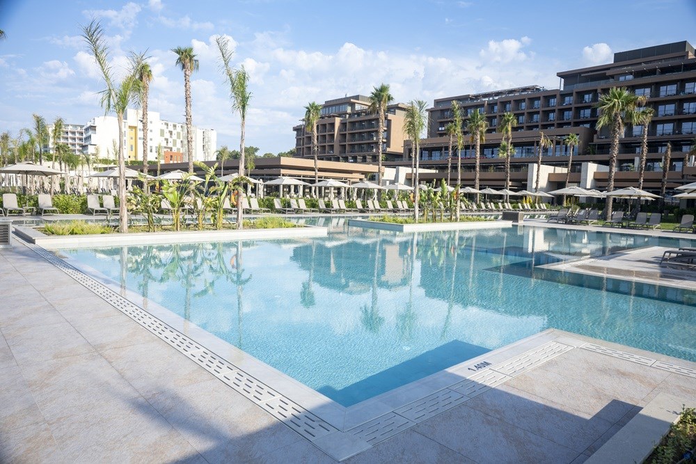 Peyzaj Mimarı ve Tasarımcı Tülay Tosun’un özenle tasarladığı proje, zarif detayları ve uyumlu renk paletiyle otelin prestijini ön plana çıkarıyor. Serapool’un şık ve yüksek dayanımlı porselen çözümleri, otel havuzlarında uzun ömürlü kullanım, güvenlik ve üstün estetik sağlayarak lüks tesislerin tercih ettiği bir standart haline geliyor.