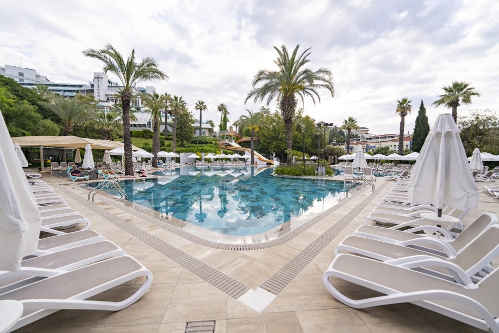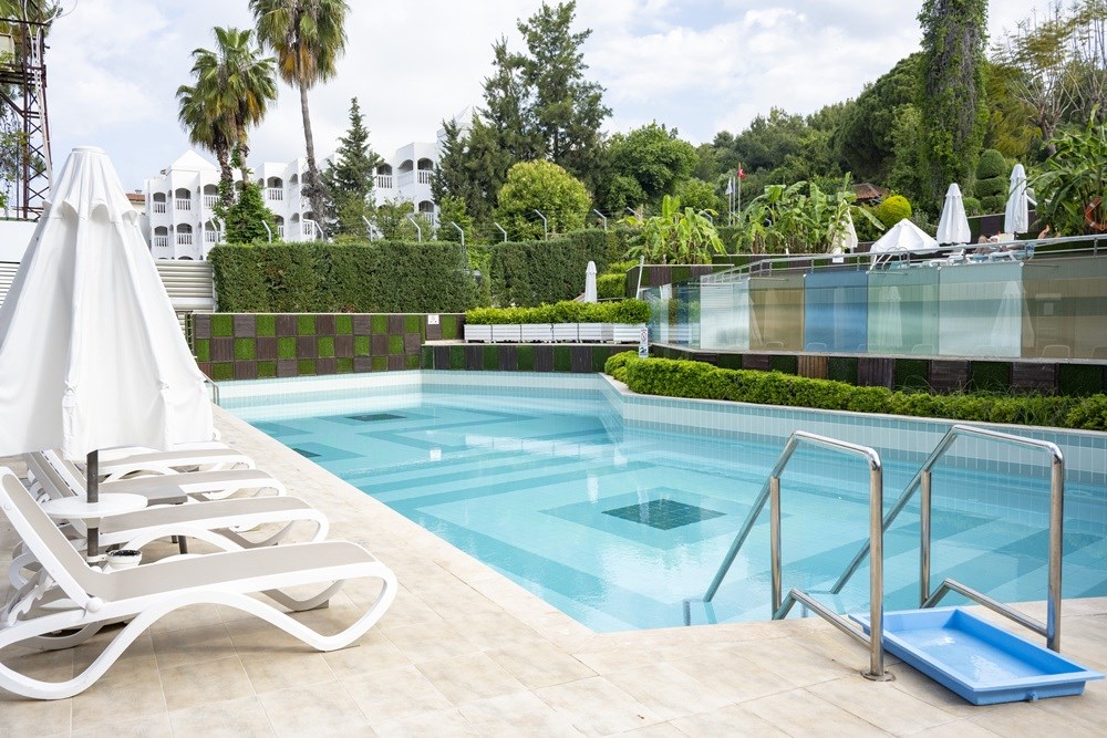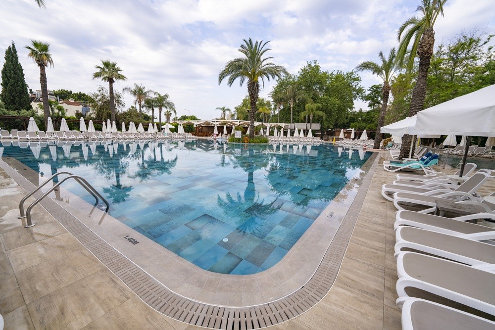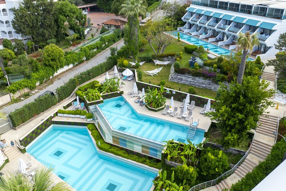 3 adet açık yüzme havuzu bulunan otelin havuzları, Serapool’un özel tasarım porselen karolarıyla modern ve zarif bir kimlik kazandı. Otelin bahçesindeki ana havuzda kullanılan Firuze Mix porselen karolar, doğal tonlardaki Natural Mocha tutamak, Natural Mocha porselen flex ızgara ve Natural Mocha merdiven kaymazı ile bir araya gelerek hem güvenliği hem de estetiği ön plana çıkarıyor. Otelin diğer havuz alanlarında ise Olimpik Seri porselen karolar kullanılarak her alana dinamik ve canlı bir görünüm sağlandı, misafirlere estetik bir deneyim sunuldu.
