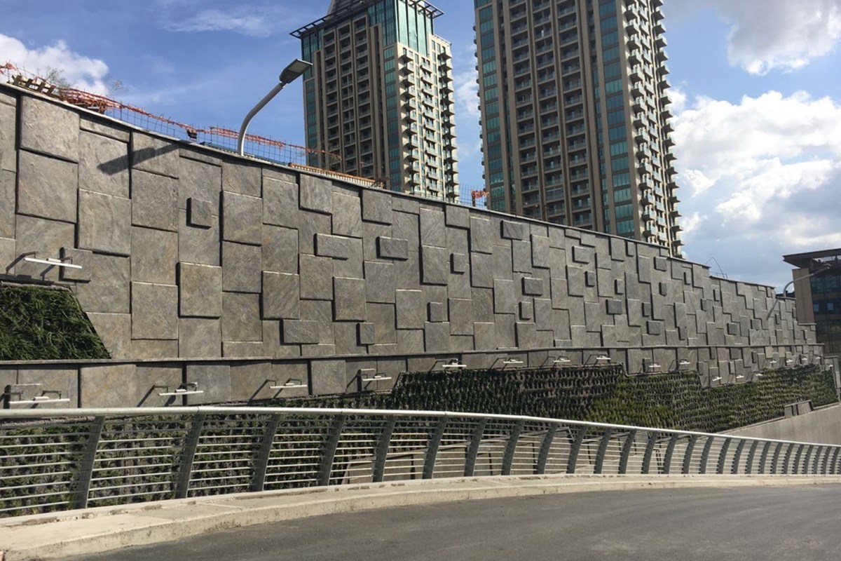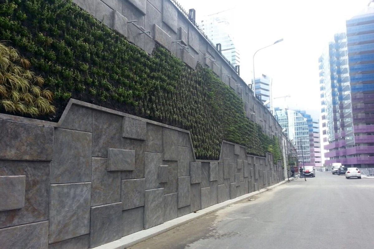 In the entire Ağaoğlu Maslak 1453 project, a vertical garden and panel application of 1453 meters length was made by using polyurethane panel block stone model.