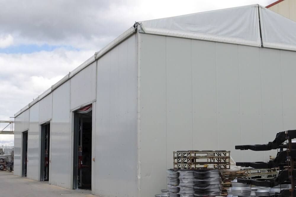 RÖDER T-Line Series Industrial Tent Systems were preferred at Anadolu Isuzu Automotive Kocaeli Manufacturing Facilities. 2 tent systems built with steel truss construction for storage purposes, with 20 and 10 meters of clear span, 40 and 35 meters of length and 6.20 meters of side height, were established on an area of 1150 m².