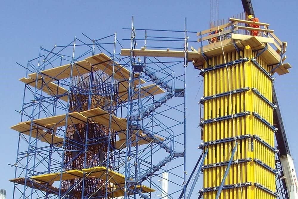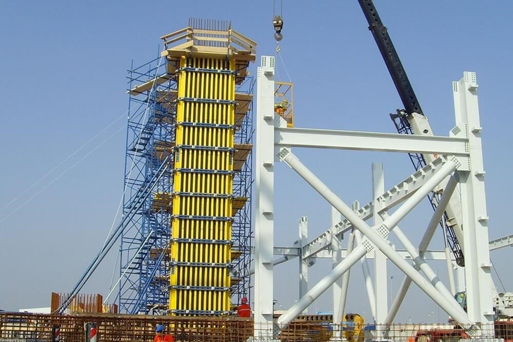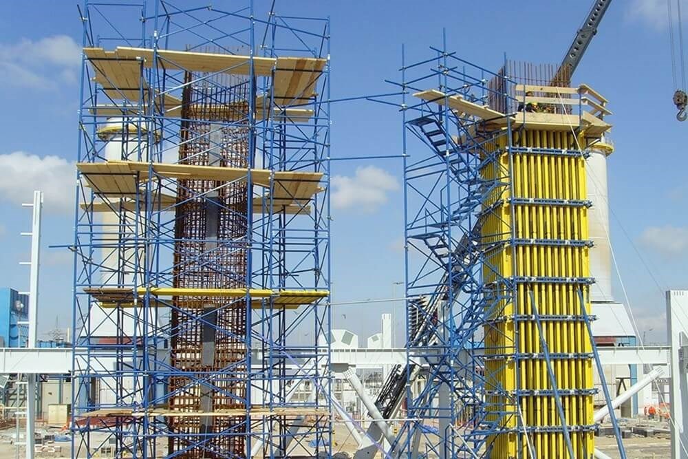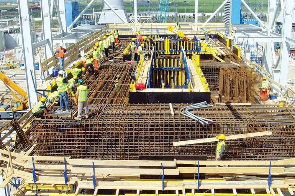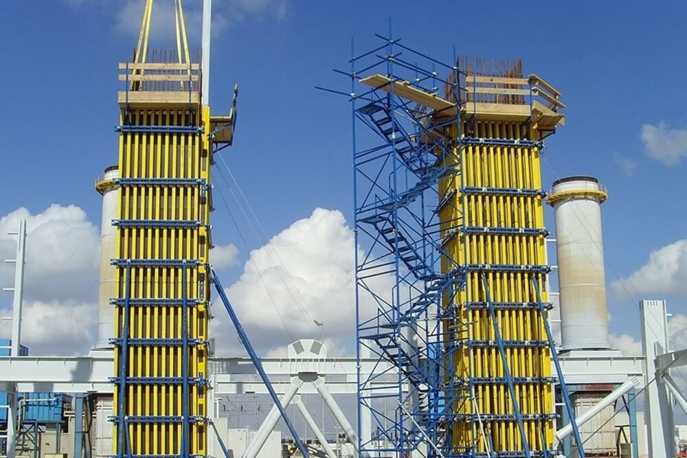 In reinforced concrete pedestal buildings that will carry steam turbine generators, 13 m. Giant columns with a height of 210x210 and 210x270 cm were cast in one go with the INTEVA system.