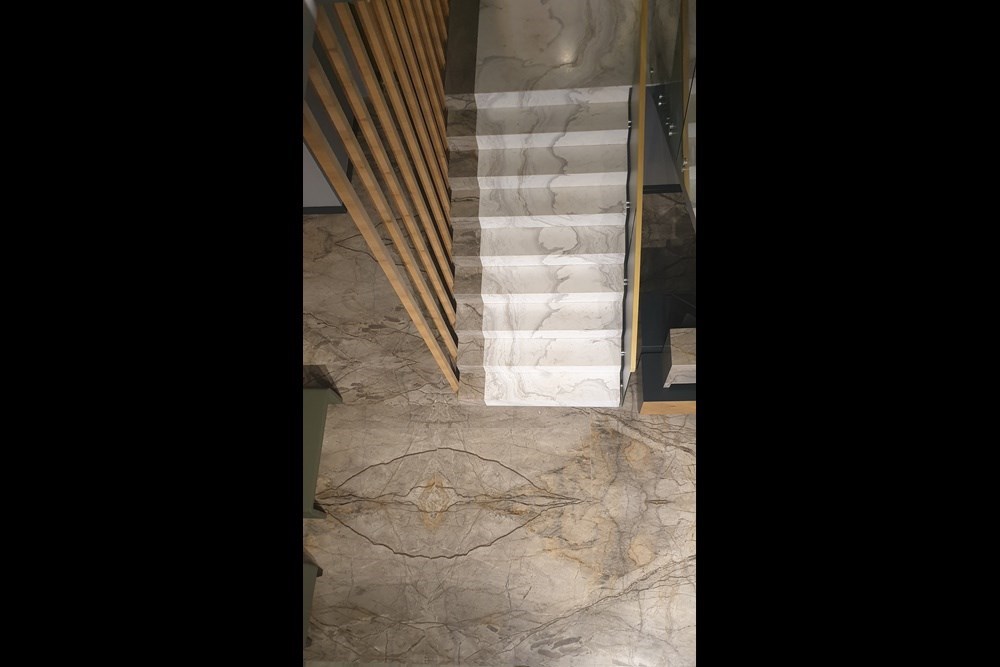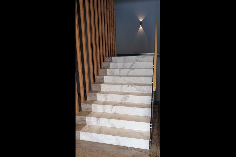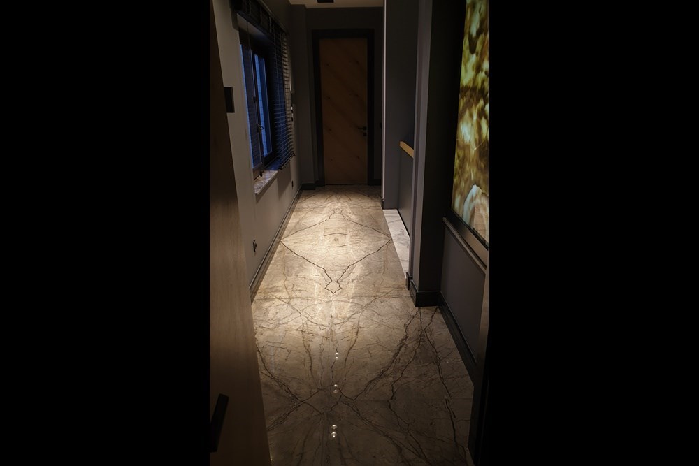 "Silver River" marble slabs from Lion Stone Art's own quarry were used at Lion Stone Art Factory office spaces, one of the leading marble slab factory in Turkey, located in Denizli.