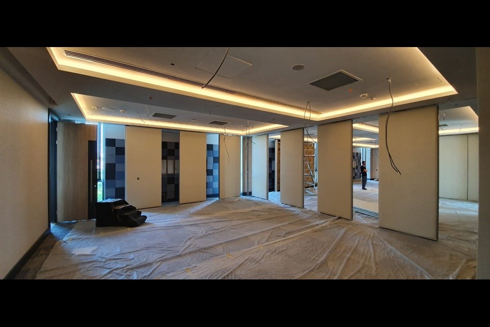 In the project carried out with Neta Architecture and Summa Construction in Hotel Courtyard by Marriott Chisinau, the assembly of our mobile partition wall systems for meeting halls was completed with fabric covering surfaces applied in the field. Multi-purpose spaces that can be used as 3 different halls or 1 large hall at the same time are candidates to be one of the most rented functional areas of the hotel.
