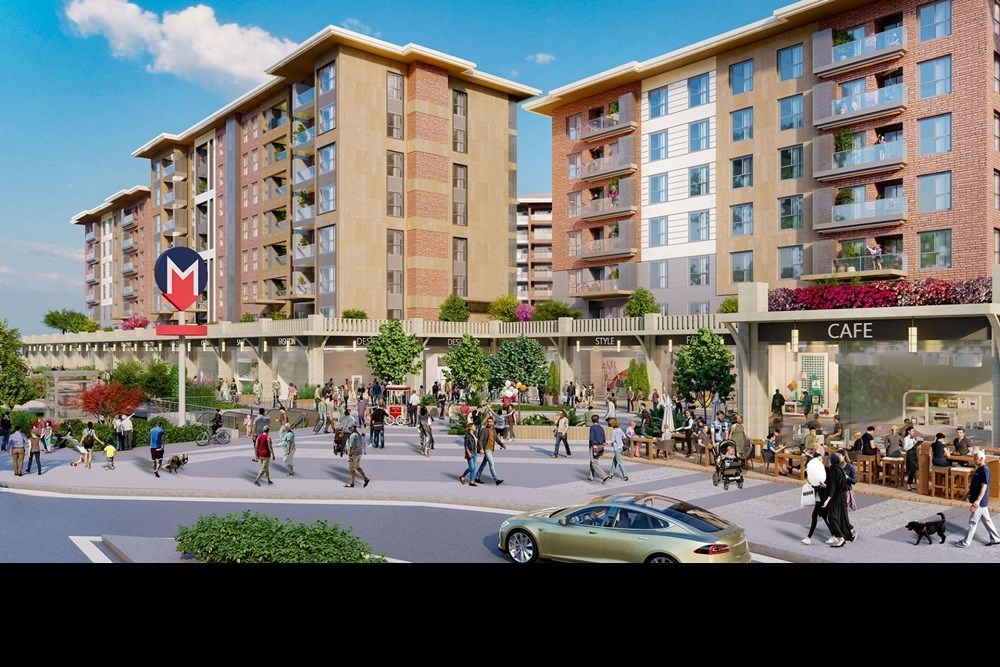 Commercial areas that serve the circulation area used by different user-profiles and located on the axis directly connected to the subway are located at the street level. Thus, a large and prestigious public space was developed and the open-air street-side shopping culture in the region was enriched. While there is a dynamic life with commercial and social areas on the periphery, there is a green area made available for the use of the residential area in the interior of the project. The residential life, which is isolated from commercial areas thanks to the difference in elevation, is in relation with the green texture with the recreation areas around the pond and the landscape design with lemon trees.