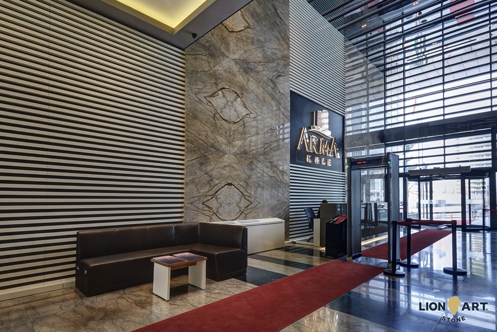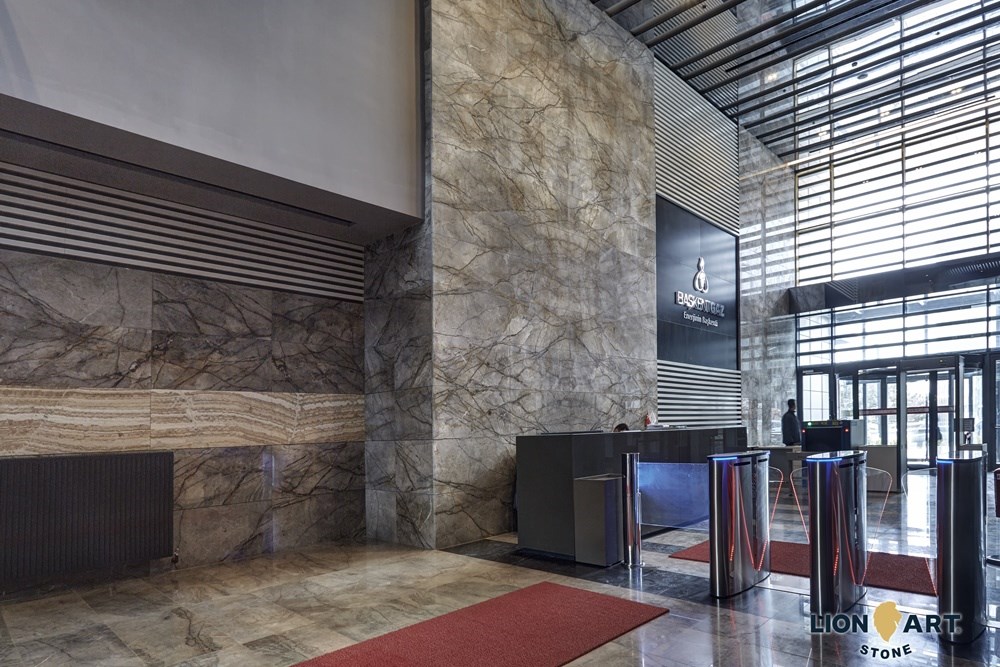 In both towers, "Silver River" and "Gray Philharmonic" marble slabs from Lion Stone Art's own quarry were used.