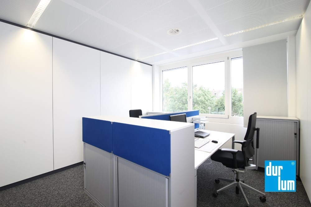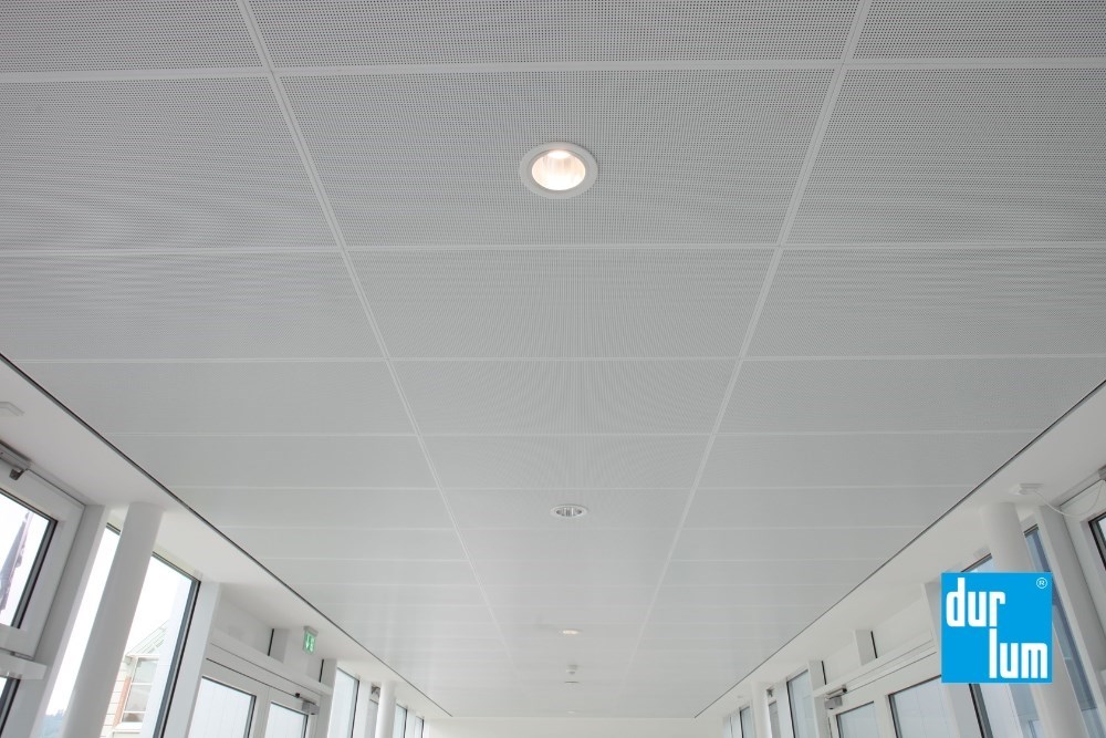 The easy installation of the S5.6 FH C-channel ceiling systems and their ability to adapt to the reorganization of dividing walls perfectly address the need for quickly converting flexible workspaces, which has become essential today. This allows for the effortless creation of larger spaces by removing partition walls when needed. Additionally, Durlum has developed ceiling systems with a width of 2.25 m and integrated LED luminaires specifically for corridors.