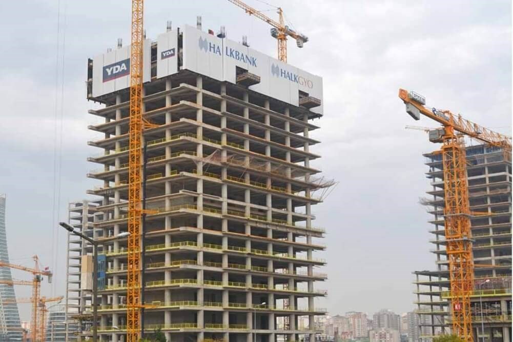 The Halk REIT Towers project is a mixed project that consists of two 46- and 34-floor office towers and three 8-storey commercial buildings, implemented on the land within the project, as one of the biggest stakeholders of the Istanbul International Finance Center project, which is carried out under the coordination of the Ministry of Environment and Urbanization. In the construction of the 46-storey office tower with a total construction area of 409,664 m2, "RT" wind protection curtains covering 2.5 floors were used for maximum occupational safety, efficiency and protection from the wind.