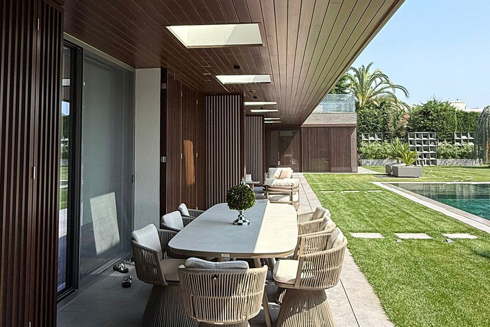Kısıklı Villa, dış cephe ve mimari detaylarında kullanılan Technowood çözümleriyle doğal bir görünüm kazanan özel bir konut projesidir. Cephe ve saçak uygulamaları, yapının genel mimari diliyle uyumlu bir bütünlük oluşturmaktadır. Ahşap dokunun verdiği sıcak etki, dış mekânda sade ve modern bir atmosfer yaratmaktadır. Uzun ömürlü ve düşük bakım gerektiren sistemler sayesinde yapı, estetik sürekliliğini zaman içinde korumayı hedeflemektedir.