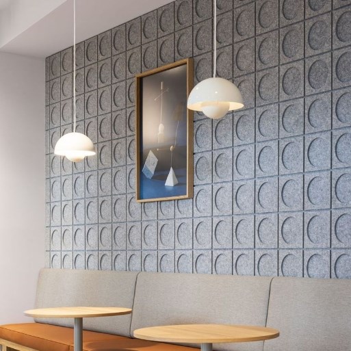 Acoustic wall panels are wall panel solutions produced from high density hard felts, offering both acoustic comfort and an aesthetic appearance together. Embossed patterned acoustic wall panels offer the opportunity to bring life to your walls by adding a brand new dimension in this field. It has rich pattern options.