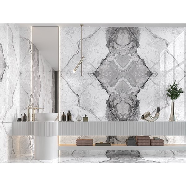 With the Nebbioso Bookmatch Series, the matching elegance on walls and floors adds a different dimension to spaces. With its 120 x 180 cm size, full lappato surface and marble appearance, it becomes indispensable for spaces.