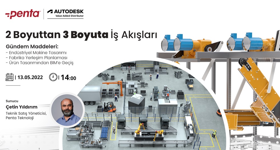 13 Mayıs 2022 Cuma günü saat 14:00’te Penta Teknoloji tarafından “2 Boyuttan 3 Boyuta İş Akışları” konulu bir webinar gerçekleştirilecek. Üretim ve tasarım alanında en popüler 3 iş akışı ve bu iş akışlarında kullanılan araçlar hakkında ayrıntılı bilgilerin konuşılacağı webinarda gündem maddeleri: