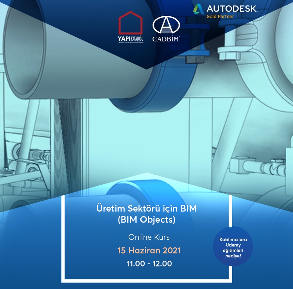 YAPI KATALOĞU Webinar Serisi kapsamında 32. oturumunu 15 Haziran Salı günü saat 11.00-12.00 arasında CADBIM ile gerçekleştirecek. Yazılım Geliştirme ve Aplikasyon Müdürü Volkan Arıkan’ın konuşmacı olarak yer alacağı etkinlikte, “Üretim Sektörü için BIM” başlığı altında BIM objeleri hakkında; mimarlara, iç mimarlara, tasarımcılara ve mühendislere 1 saat sürecek bir eğitim verilecek. Eğitimin gerçekleşeceği webinar oturumuna katılanlara Udemy’den eğitim hediye edilecek.
