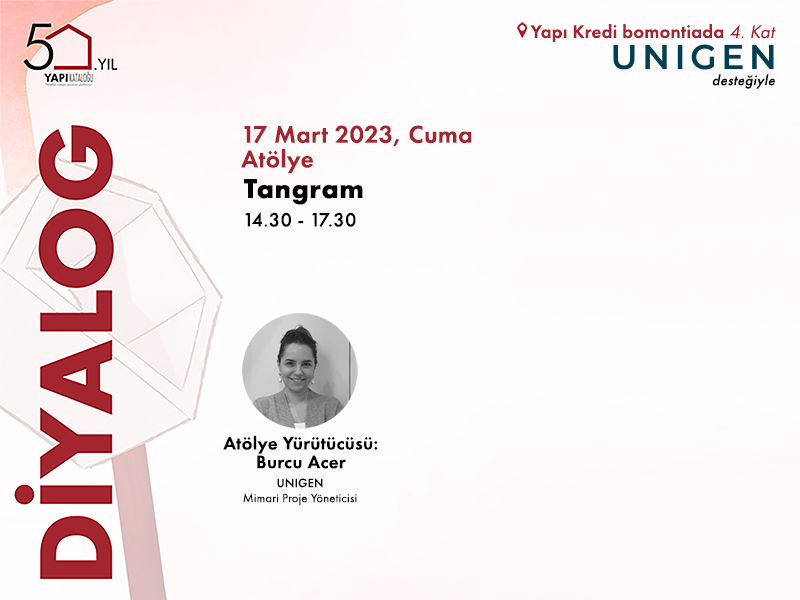 Diyalog etkinliği kapsamında 17 Mart 2023 Cuma günü saat 14.30-17.30 arasında gerçekleştirilen ve Burcu Acer’in atölye yürütücüsü olarak yer aldığı Tangram başlıklı atölyeye ilginize teşekkür ederiz.