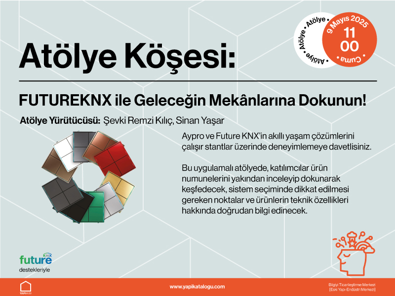 Aypro ve Future KNX’in akıllı yaşam çözümlerini çalışır stantlar üzerinde deneyimlemeye davetlisiniz. Bu uygulamalı atölyede, katılımcılar ürün numunelerini yakından inceleyip dokunarak keşfedecek, sistem seçiminde dikkat edilmesi gereken noktalar ve ürünlerin teknik özellikleri hakkında doğrudan bilgi edinecek.